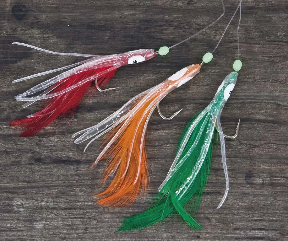 System für Dorsch und Seelachs, mit 3 Permasteel-Haken, Oktopus und Federn.