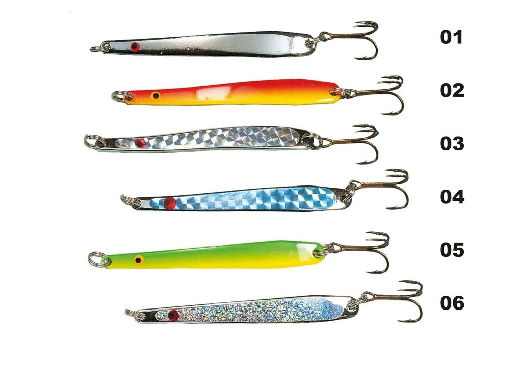 Die Blinker sind besonders fängig auf Meerforelle, Hornhecht und Lachs. Ihr Form und die starken lichtreflektierenden Farben sind für die Fische unwiderstehlich. Blinker einfach auswerfen, auf den Boden sinken lassen, anschließend einige Meter schnell einkurbeln und wieder flatternd zum Boden sinken lassen. Kann auch geschleppt werden.