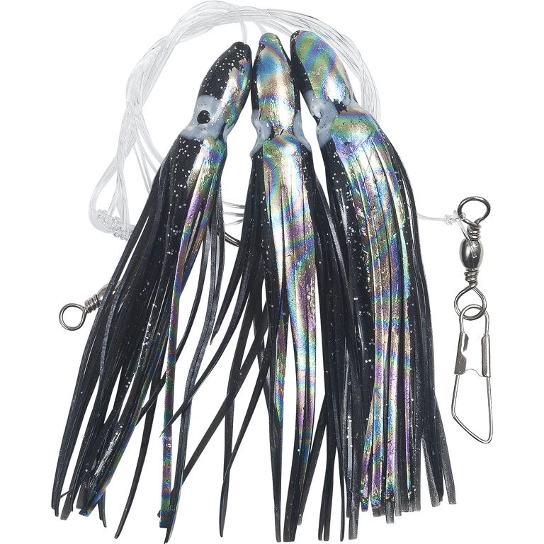 Dieses Dorschsystem besteht aus drei Haken, welche mit Oktopussen versehen sind. Bei diesem System stehen drei Hakengrößen und 5 verschiedene Farben zur Auswahl. Die Hauptschnur besteht aus 0,60mm starker monofiler Schnur. Das System ist nicht nur für Dorsch geeignet, sonder eignet sich in der kleinen Größen auf für Makrele bzw. alle Größen auch für Seelachs.