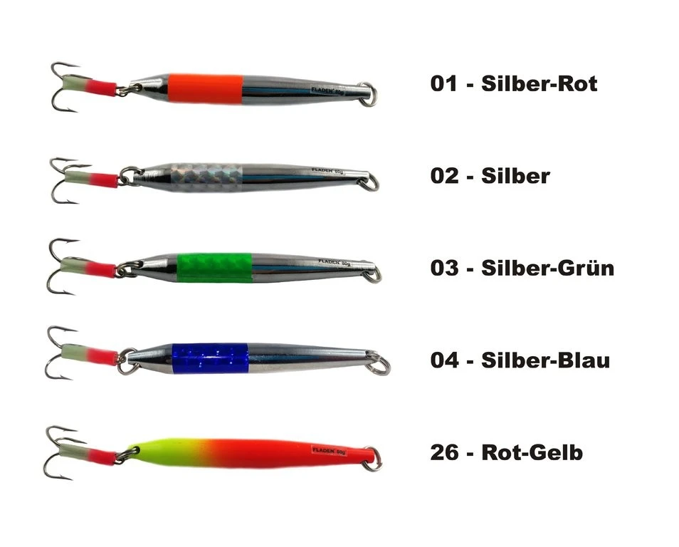 Günstiger und fängiger bleifreier Pilker in einem neuen Look. Er ist in fünf neuen Farben bestellbar. Die Gewichte reichen von 40g – 100g. In Gewichten von 200g – 600g sind nur Silber und Rot/Gelb verfügbar.