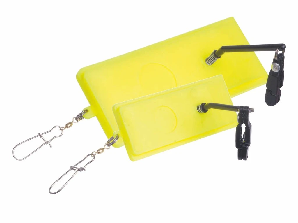 Dieses Side Planer Board gibt es in zwei verschiedenen Größen von 13cm und 19cm. Man muss es einfach nur in die Schnur einhängen und schon können Sie eine größere Fläche links und rechts vom Boot abfischen. Dieses Planer Board verfügt über eine einzigartigen Auslösemechanismus mit einem strapazierfähigen Gummi-Pad. In jeder Packung ist ein gelbes Board enthalten.