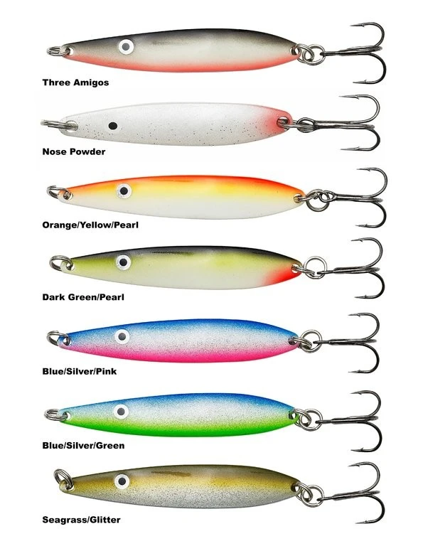 Ein klassisch flatternder Blinker. Die schmale Form und das schwere Design schaffen eine fischanziehende Kombination aus Reflektion und Druckwellen. Perfekt für die Küsten- und Flussfischerei.