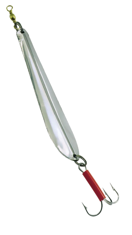 Der Svenskepilk, auch Bergmann-Pilker genannt, ist ein spezieller Taumel-Pilker. Er ist absolut rostfrei und der TopFavorit für große Tiefen, ob in Norwegen, am „Gelben Riff“ oder sonst wo auf den Weltmeeren. Seine spezielle Form lässt ihn in große Tiefen langsam herabtaumeln. Auf seinem Weg in die Tiefe beangelt dieser Pilker einen großen Radius unter dem Boot. So kannder Räuber den Köder bereits Absinken attackieren. Dieses ist in großen Tiefen von Vorteil, damit man nicht nur am Grund, sondern auch im Mittelwasser, wo der Fisch oft jagt, erfolgreich ist.