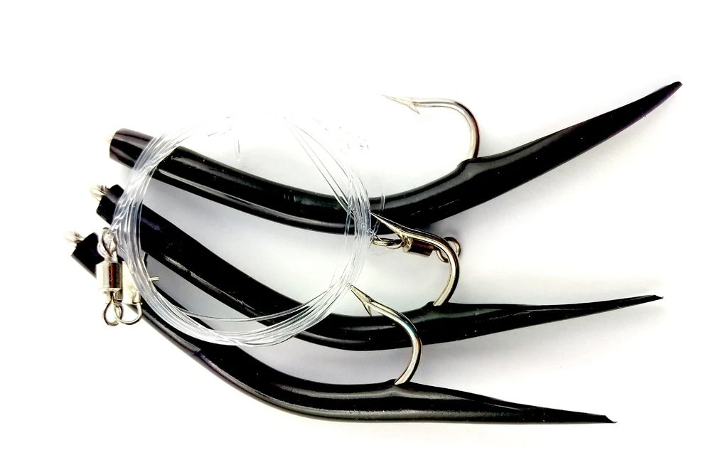 Dieses Pilkvorfach besteht aus 3 schwarzen Gummi-Makks mit einer Hakengröße von 8/0.
